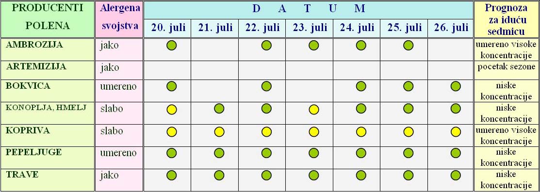koncentracije polena koje kod izuzetno osetljivih osoba mogu izazvati alerg. reakcije |
