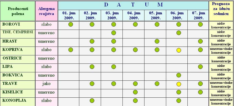 koncentracije polena koje kod izuzetno osetljivih osoba mogu izazvati alerg. reakcije |