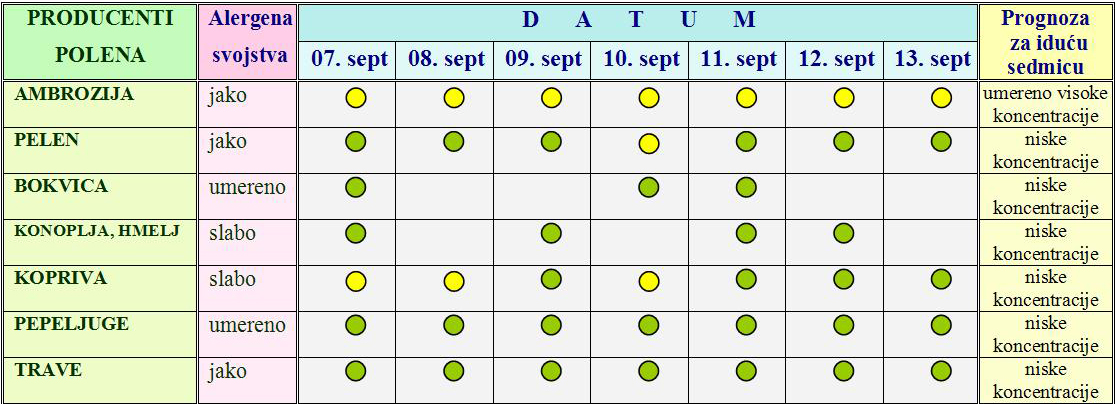 koncentracije polena koje kod izuzetno osetljivih osoba mogu izazvati alerg. reakcije