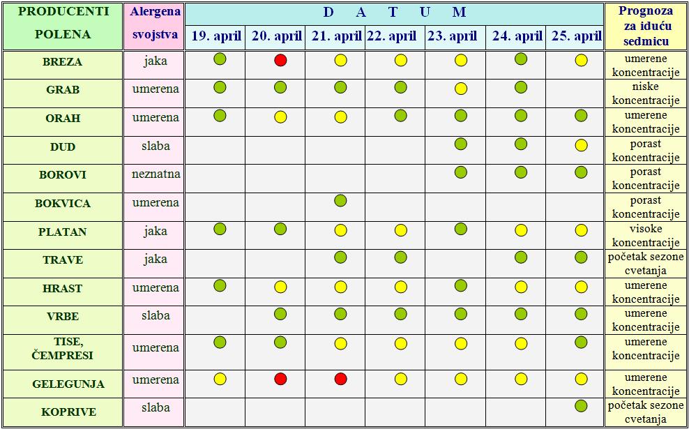 koncentracije polena koje kod izuzetno osetljivih osoba mogu izazvati alerg. reakcije |