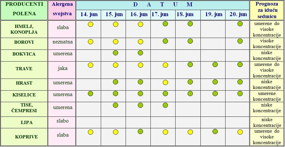 koncentracije polena koje kod izuzetno osetljivih osoba mogu izazvati alerg. reakcije