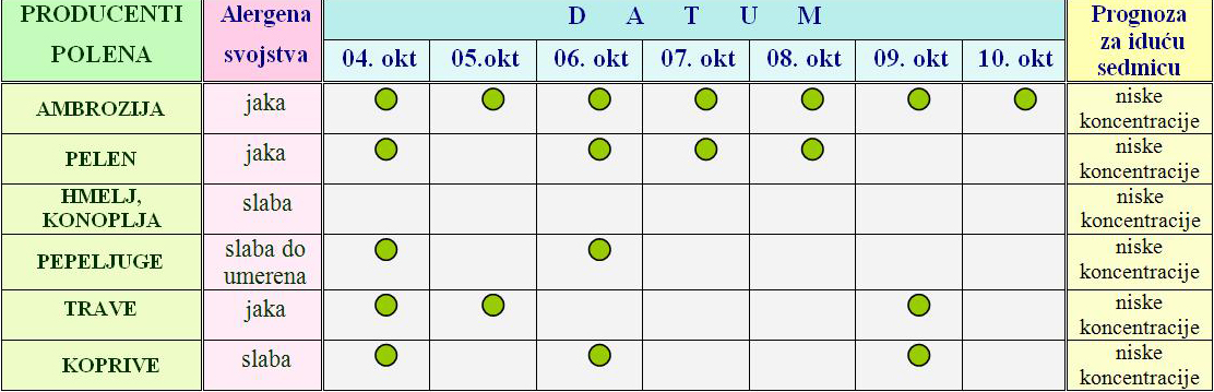 koncentracije polena koje kod izuzetno osetljivih osoba mogu izazvati alerg. reakcije