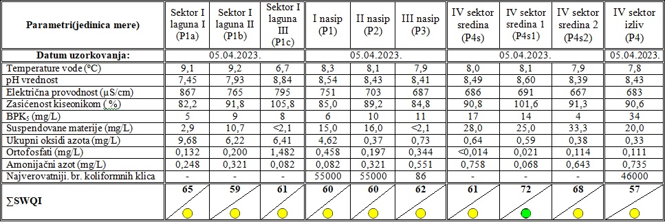 Indikatori kvaliteta površinskih voda metodom Serbian Water Quality Index dobijeni su korelacijom pokazatelja kvaliteta sa Uredbom o klasifikaciji voda , Sl. glasnik SRS”, 5/68.