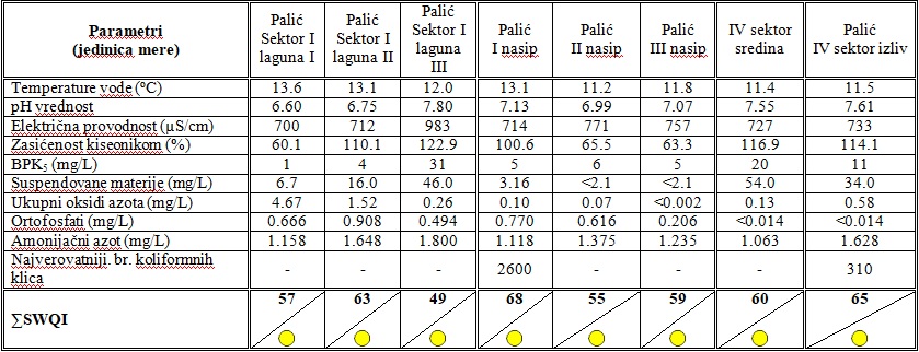 Indikаtori kvаlitetа površinskih vodа metodom Serbian Water Quality Index dobijeni su korelacijom pokаzаteljа kvаlitetа sa Uredbom o klasifikaciji voda („Sl. glasnik SRS”, br. 5/68).