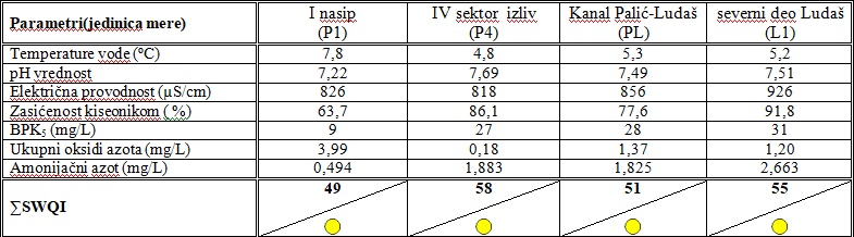Indikatori kvaliteta površinskih voda metodom Serbian Water Quality Index dobijeni su korelacijom pokazatelja kvaliteta sa Uredbom o klasifikaciji voda , Sl. glasnik SRS”, 5/68.