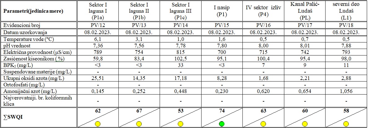 Indikatori kvaliteta površinskih voda metodom Serbian Water Quality Index dobijeni su korelacijom pokazatelja kvaliteta sa Uredbom o klasifikaciji voda , Sl. glasnik SRS”, 5/68.