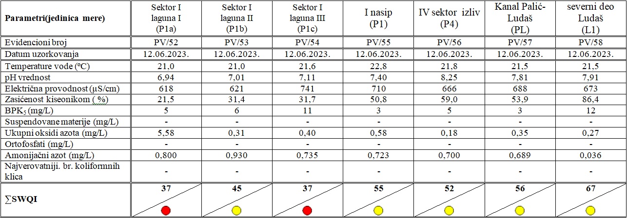 Indikatori kvaliteta površinskih voda metodom Serbian Water Quality Index dobijeni su korelacijom pokazatelja kvaliteta sa Uredbom o klasifikaciji voda , Sl. glasnik SRS”, 5/68.
