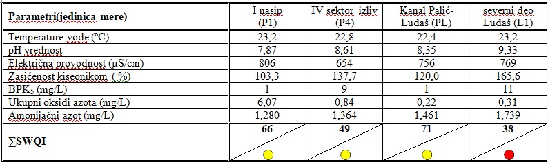 Indikatori kvaliteta površinskih voda metodom Serbian Water Quality Index dobijeni su korelacijom pokazatelja kvaliteta sa Uredbom o klasifikaciji voda ,  Sl. glasnik SRS”, 5/68.