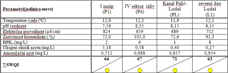Indikatori kvaliteta površinskih voda metodom Serbian Water Quality Index dobijeni su korelacijom pokazatelja kvaliteta sa Uredbom o klasifikaciji voda ,  Sl. glasnik SRS”, 5/68.