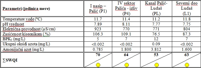 Indikаtori kvаlitetа površinskih vodа metodom Serbian Water Quality Index dobijeni su korelacijom pokаzаteljа kvаlitetа sa Uredbom o klasifikaciji voda („Sl. glasnik SRS”, br. 5/68).