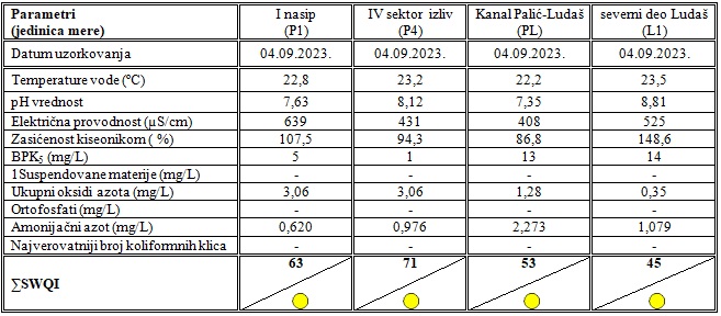 Na osnovu Pravilnika o nacionalnoj listi indikatora zaštite životne sredine, Sl. glasnik R.S. 37/2011, stanje površinskih voda u pogledu opšteg kvaliteta, prikazuje se indikatorom SWQI.