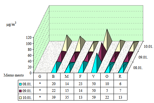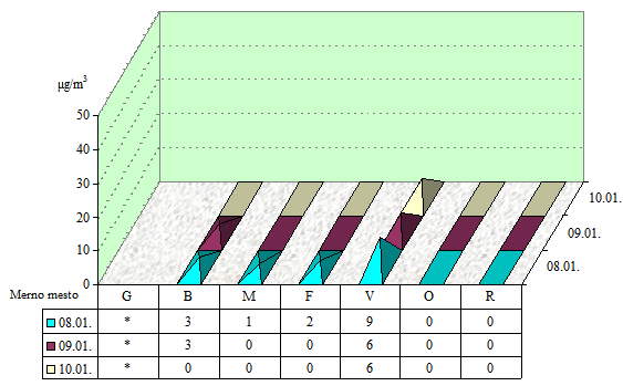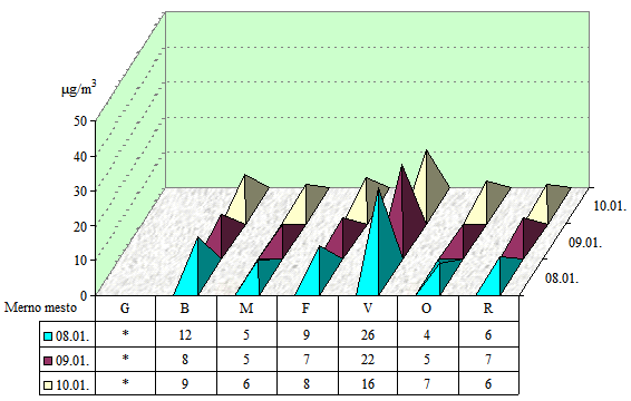 Napomena: 0 - ispod granice detekcije 0,5 µg/m3