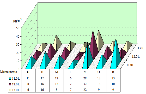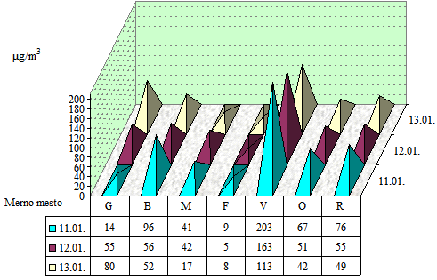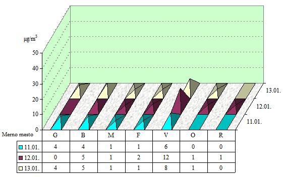 Napomena: 0 - ispod granice detekcije 0,5 µg/m3