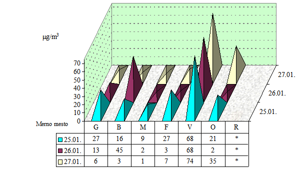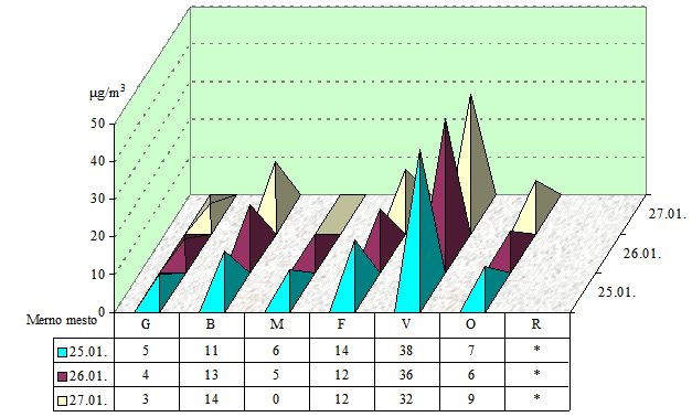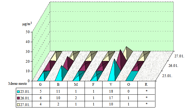 Napomena: 0 - ispod granice detekcije 0,5 µg/m3