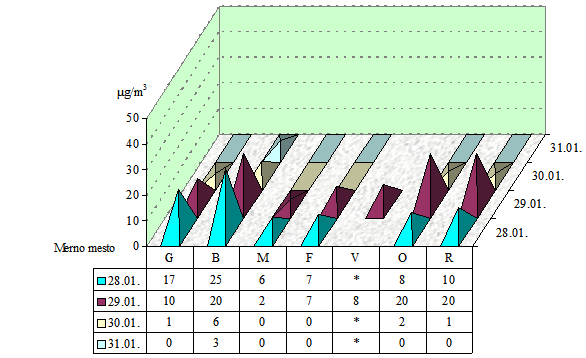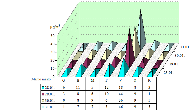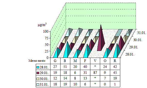Napomena: 0 - ispod granice detekcije 0,5 µg/m3