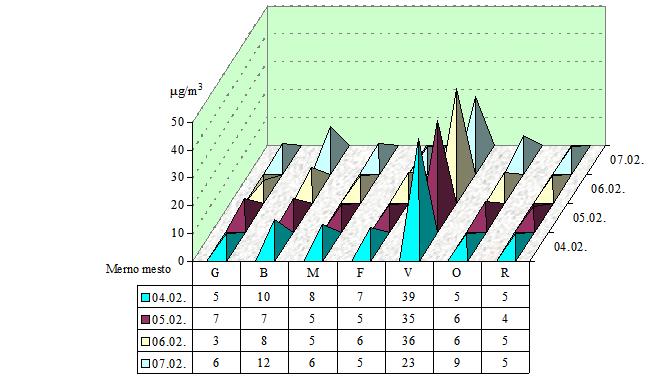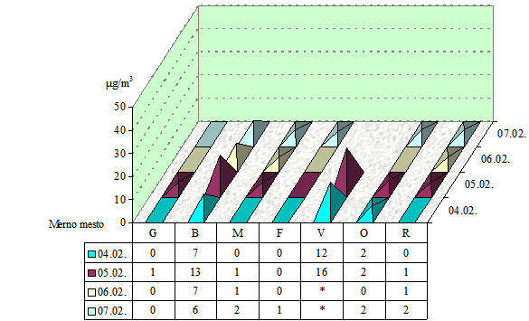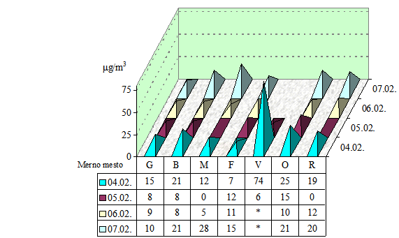 Napomena: 0 - ispod granice detekcije 0,5 µg/m3