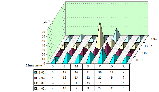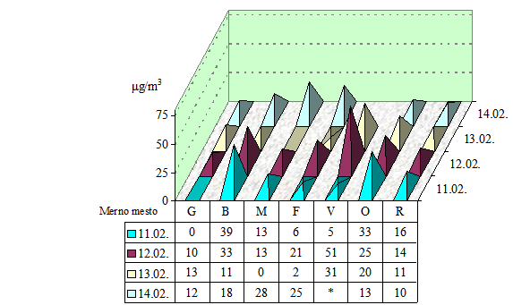 Napomena: 0 - ispod granice detekcije 0,5 µg/m3