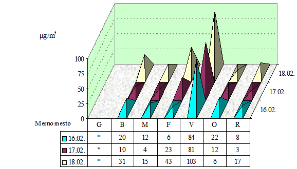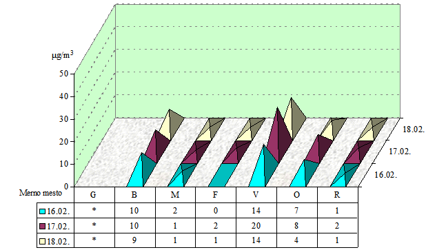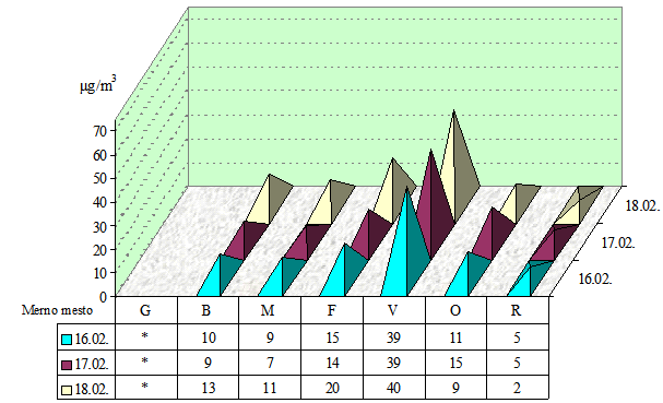 Napomena: 0 - ispod granice detekcije 0,5 µg/m3