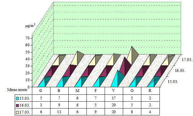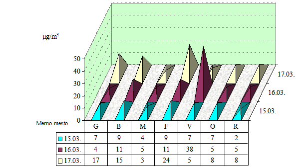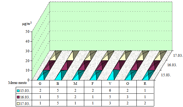 Napomena: 0 - ispod granice detekcije 0,5 µg/m3