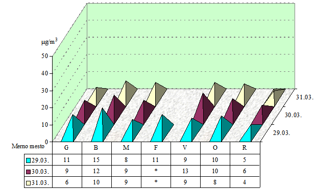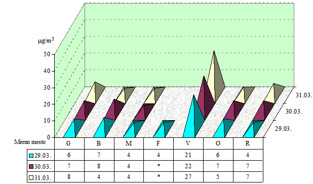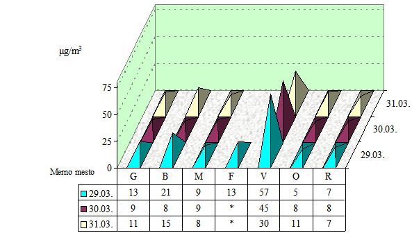 Napomena: 0 - ispod granice detekcije 0,5 µg/m3