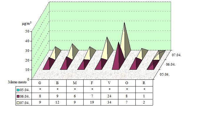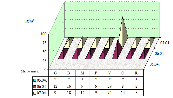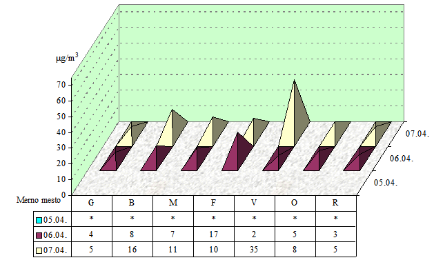 Napomena: 0 - ispod granice detekcije 0,5 µg/m3