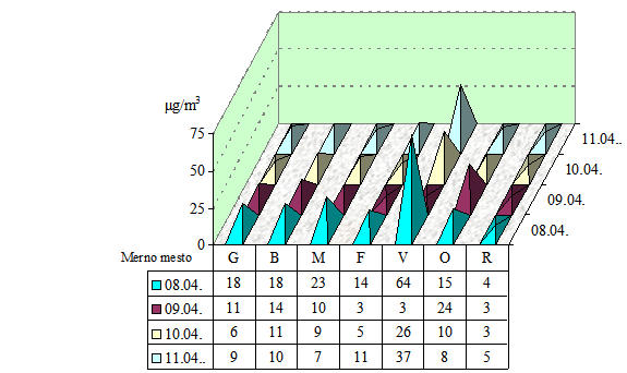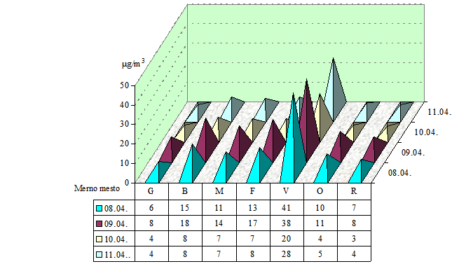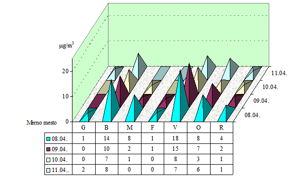Napomena: 0 - ispod granice detekcije 0,5 µg/m3