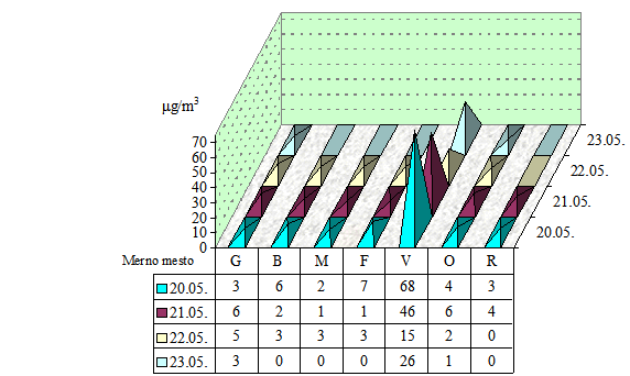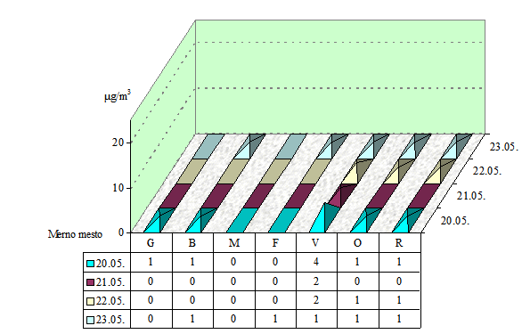 Napomena: 0 - ispod granice detekcije 0,5 µg/m3