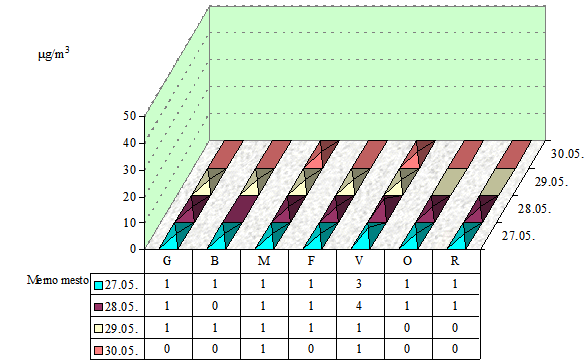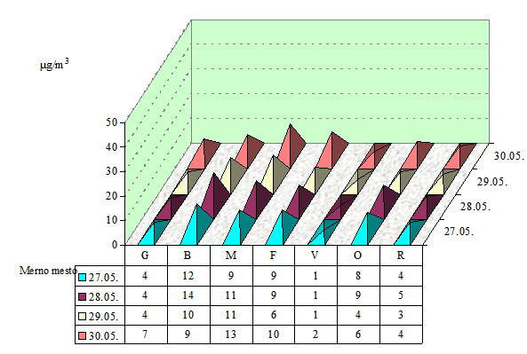 Napomena: 0 - ispod granice detekcije 0,5 µg/m3
