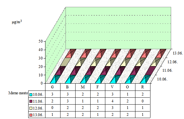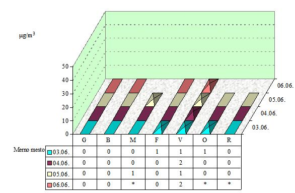 Napomena: 0 - ispod granice detekcije 0,5 µg/m3