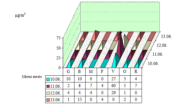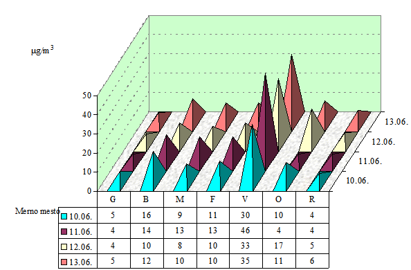 Napomena: 0 - ispod granice detekcije 0,5 µg/m3