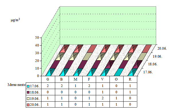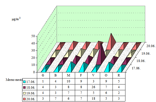 Napomena: 0 - ispod granice detekcije 0,5 µg/m3