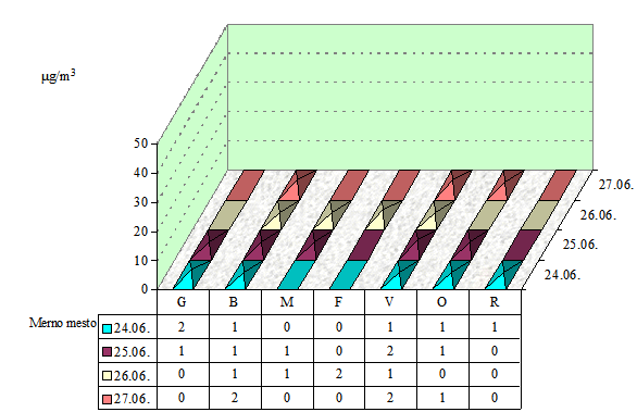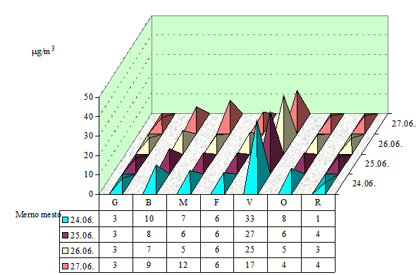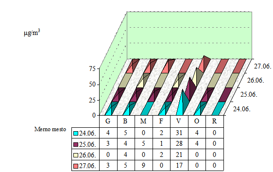 Napomena: 0 - ispod granice detekcije 0,5 µg/m3