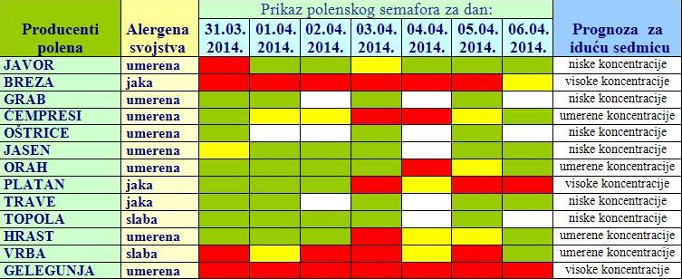 koncentracije polena koje mogu izazvati veoma jake alergijske