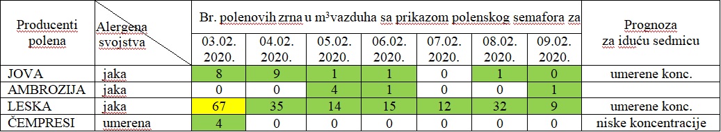 1 do 60 pz/m3 | 1 do 30 pz/m3 | koncentracije polena koje kod izuzetno osetljivih osoba mogu