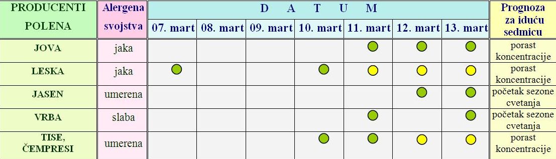 koncentracije polena koje kod izuzetno osetljivih osoba mogu izazvati alerg. reakcije |