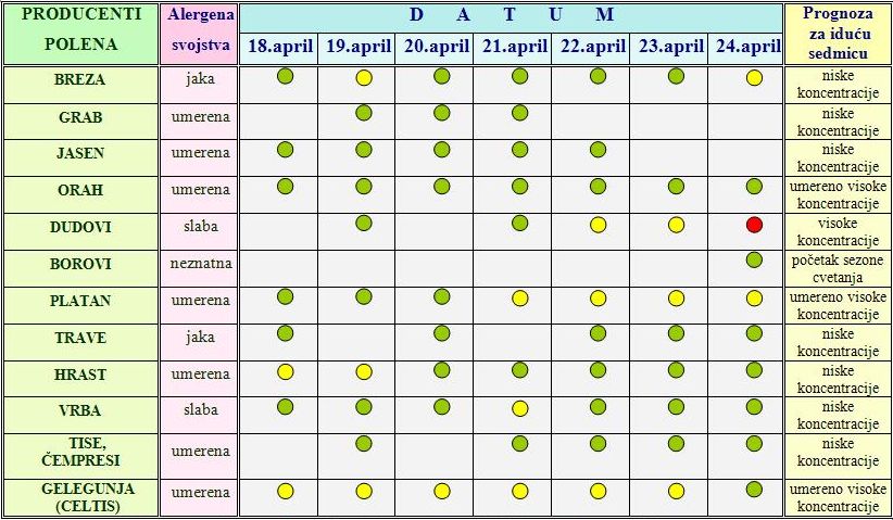 koncentracije polena koje kod izuzetno osetljivih osoba mogu izazvati alerg. reakcije |