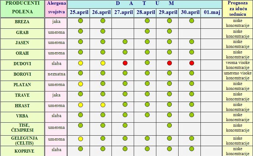 koncentracije polena koje kod izuzetno osetljivih osoba mogu izazvati alerg. reakcije |
