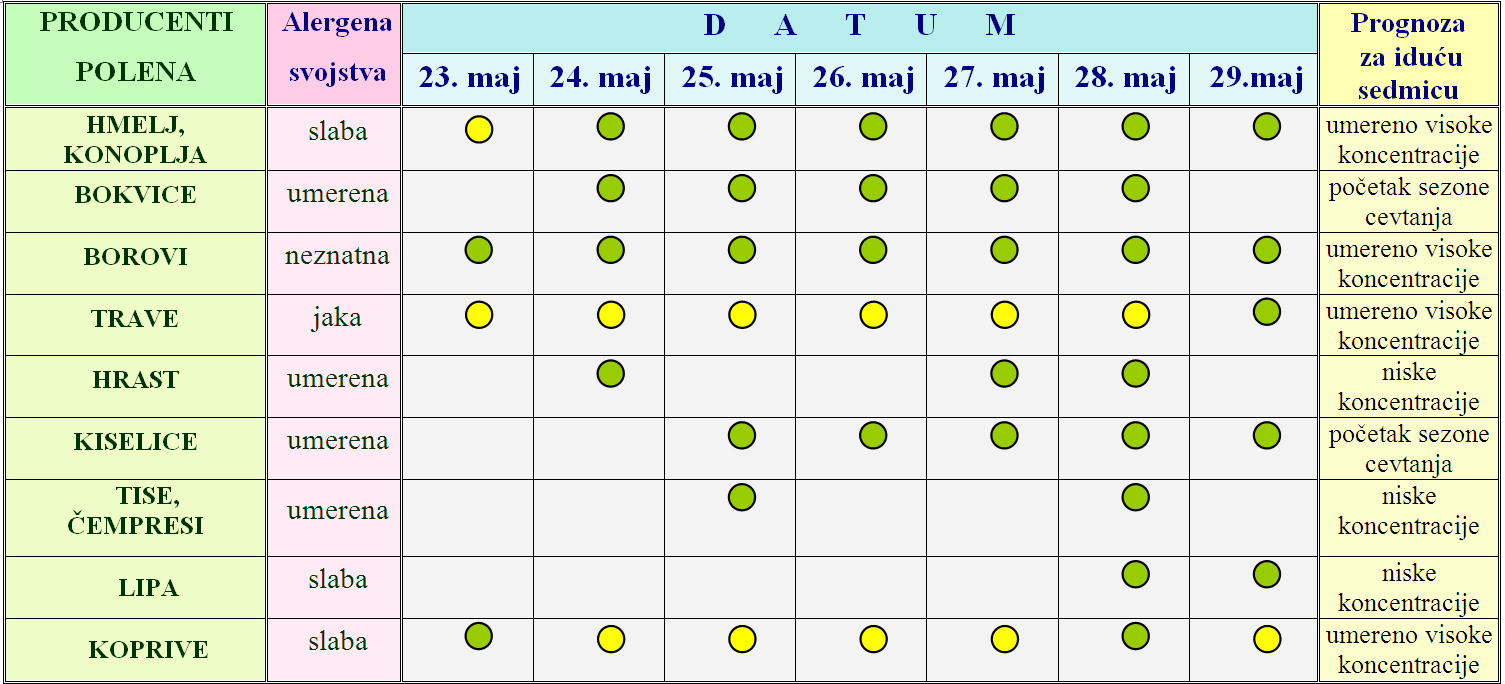 Napomena – Vremenske prilike utiču na prognozu količine polena u vazduhu