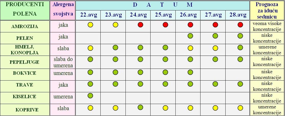 koncentracije polena koje kod izuzetno osetljivih osoba mogu izazvati alerg. reakcije