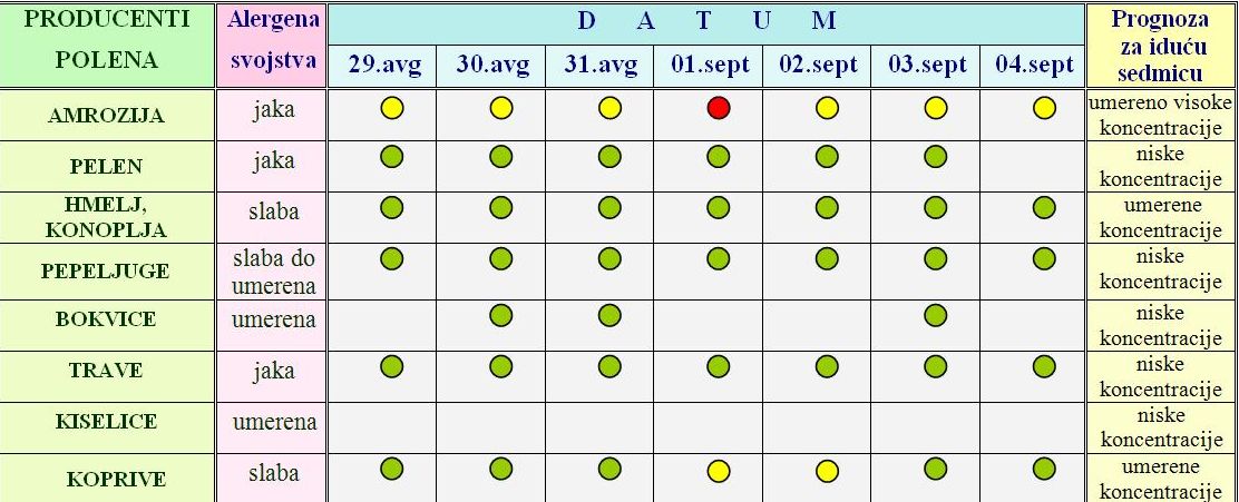 koncentracije polena koje kod izuzetno osetljivih osoba mogu izazvati alerg. reakcije |