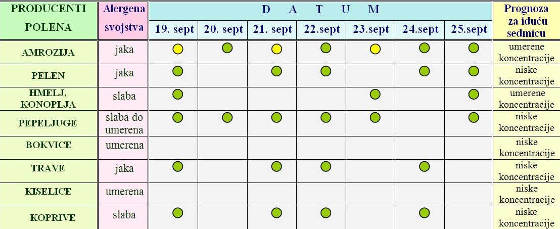 koncentracije polena koje kod izuzetno osetljivih osoba mogu izazvati alerg. reakcije |