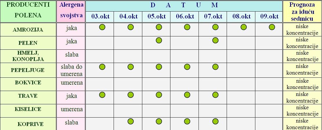 Napomena – Vremenske prilike utiču na prognozu količine polena u vazduhu