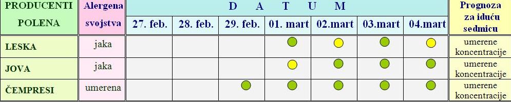 koncentracije polena koje kod izuzetno osetljivih osoba mogu izazvati alerg. reakcije |
