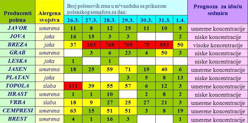 koncentracije polena koje kod izuzetno osetljivih osoba mogu