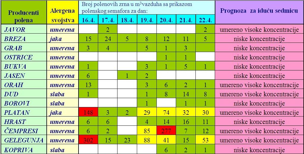 koncentracije polena koje kod izuzetno osetljivih osoba mogu