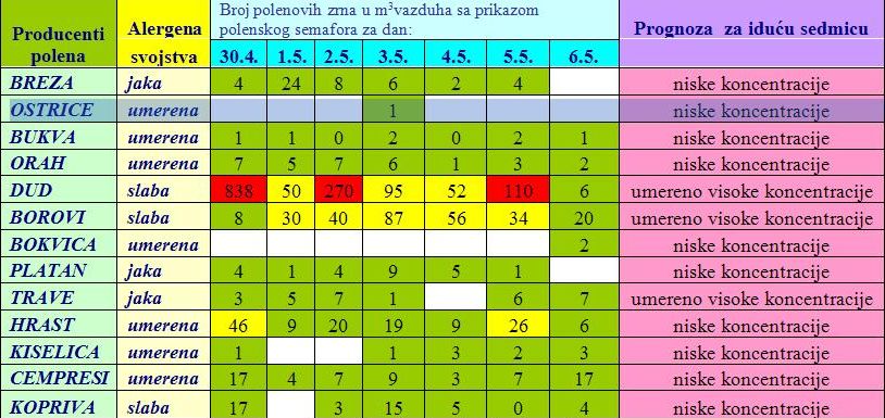 Napomena – Vremenske prilike utiču na prognozu količine polena u vazduhu
