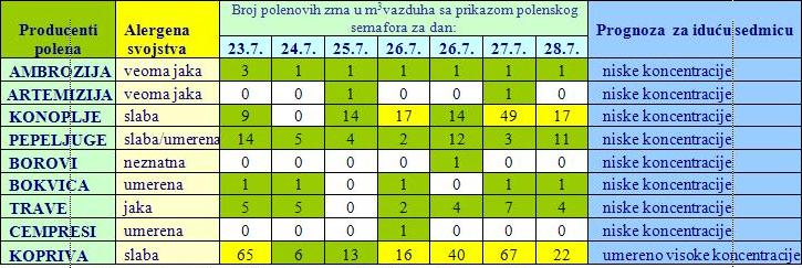koncentracije polena koje kod izuzetno osetljivih osoba mogu izazvati alerg. reakcije