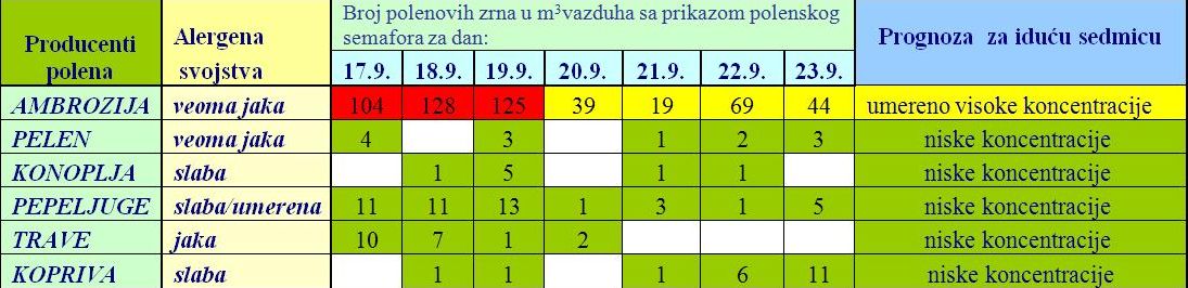 Napomena – Vremenske prilike utiču na prognozu količine polena u vazduhu