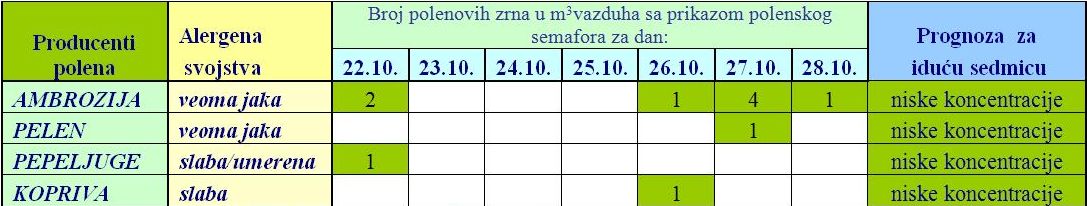 koncentracije polena koje kod izuzetno osetljivih osoba mogu