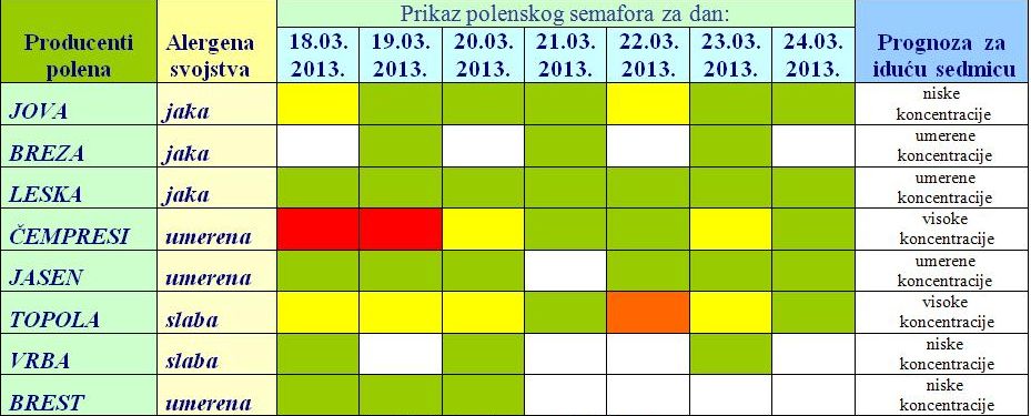 koncentracije polena koje kod izuzetno osetljivih osoba mogu izazvati alerg. reakcije
